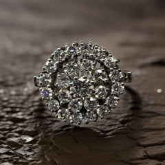 Opulenter 14 Karat Weißgold-Ring, geschmückt mit 25 Brillanten von insgesamt 2,64 Karat. Tauchen Sie ein in den Luxus und die Opulenz unseres Rings aus 14 Karat Weißgold, der mit 25 Brillanten von insgesamt 2,64 Karat verziert ist. Verleihen Sie jedem Anlass mit diesem exquisiten Schmuckstück einen Hauch von Glanz und Raffinesse.